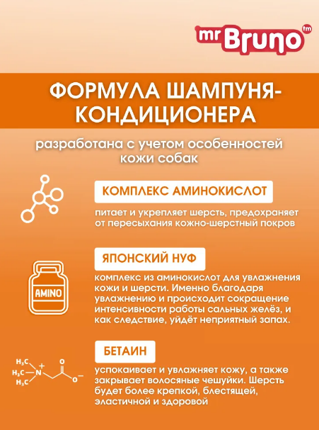 "Мистер Бруно" шампунь-кондиционер дезодорирующий для собак 350мл