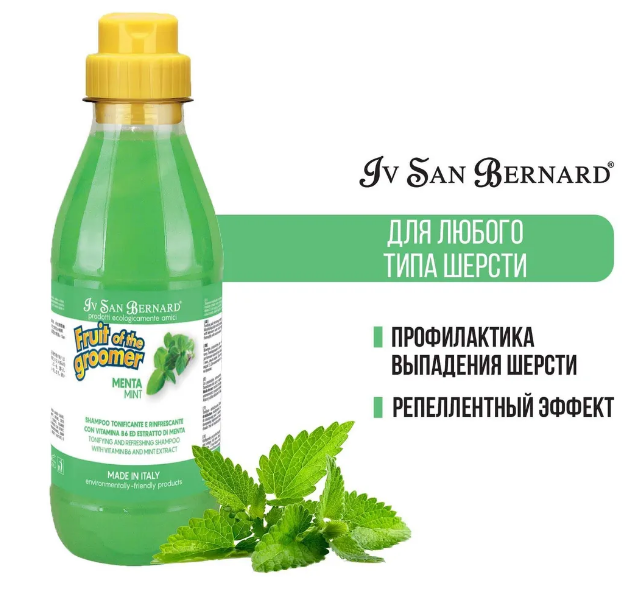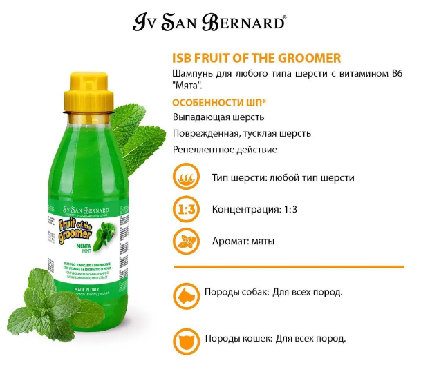 Шампунь Iv San Bernard Fruit of the Groomer Mint для любого вида шерсти с витамином В6 500 мл