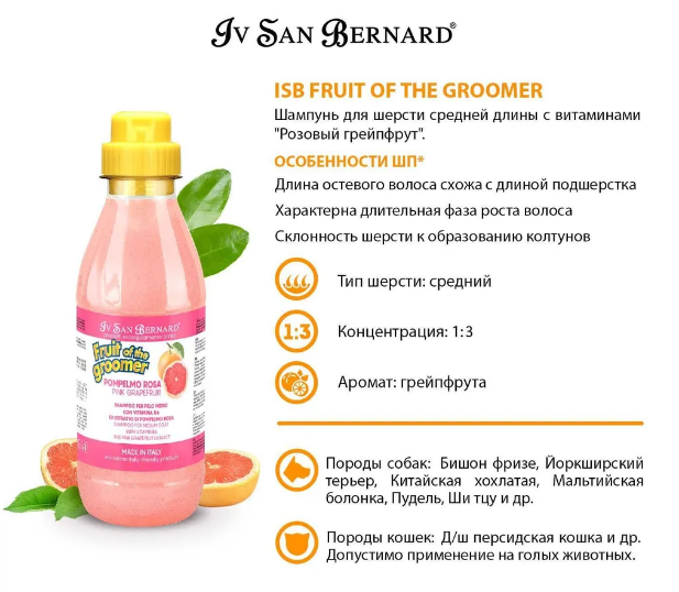 ISB Fruit of the Groomer Pink Grapefruit Шампунь для шерсти средней длины с витаминами 500 мл