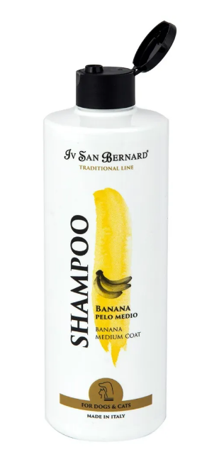 Шампунь с приятным ароматом банана для собак и кошек с шерстью средней длины. Благодаря нежному и укрепляющему действию шампуня, шерсть приобретает эластичность и блеск.Способ применения: разбавить 1 часть шампуня 3 частями воды. Нанести шампунь на предварительно смоченную шерсть легкими движениями. Втирайте в течение нескольких минут. Тщательно ополоснуть теплой водой.Для наилучшего результата после шампуня применяйте кондиционер «Банан» от Ив Сан Бернард.