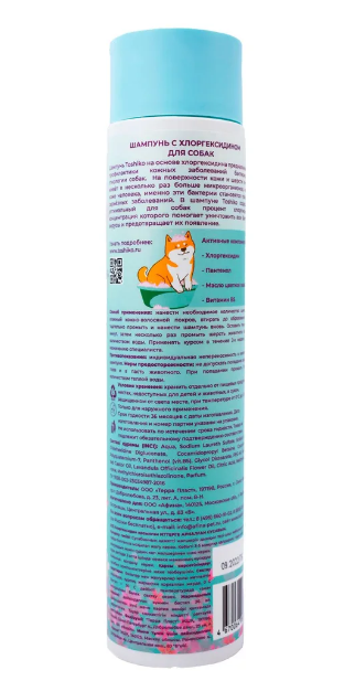 Toshiko шампунь для собак, с хлоргексидином, 300 мл Линейка шампуней для домашних животных Toshiko созана на основе пожеланий и рекомендаций их владельцев: удобный и стильный флакон сбалансированное значение pH оптимальное пенообразование содержание натуральных, природных компонентов, которые восстанавливают кожу, уменьшают раздражение и подавляют развитие бактерий. Шампуни Toshiko помогут вам в бережном уходе за шерстью вашего питомца, обеспечивая чистоту и защиту, не нарушая кожно-шерстяногго покрова. Активные компоненты: Хлоргексидин помогает унчтожить все бактерии, вирусы и предовращает их появление. Помогает снятию восплительных процессов. Масло цветков лаванды успокаивает зудящую и раздраженную кожу. Витамин B5 улучшает состояние шерсти питомца. Брется с сухостью шерсти. Шампунь Toshiko на основе хлоргексидина предназначен для профилактики кожных заболеваний бактериальной этиологии собак.
