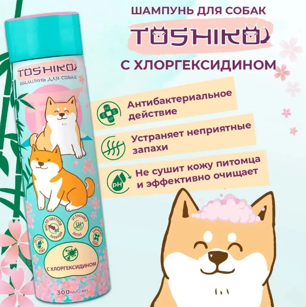 Toshiko шампунь для собак антибактериальный с хлоргексидином - 300 мл