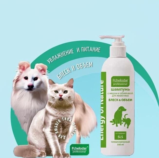 ПЧЕЛОДАР БЛЕСК И ОБЪЕМ шампунь для собак и кошек с медом и облепихой 350 мл