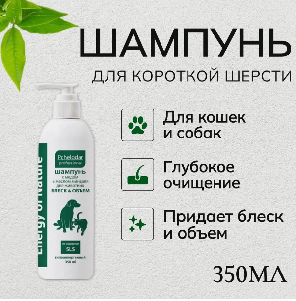 Пчелодар шампунь "Professional Energy of Natural" с медом и маслом миндаля для кошек и собак 350мл