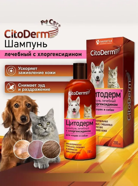 Цитодерм Шампунь лечебный с хлоргексидином для кошек и собак