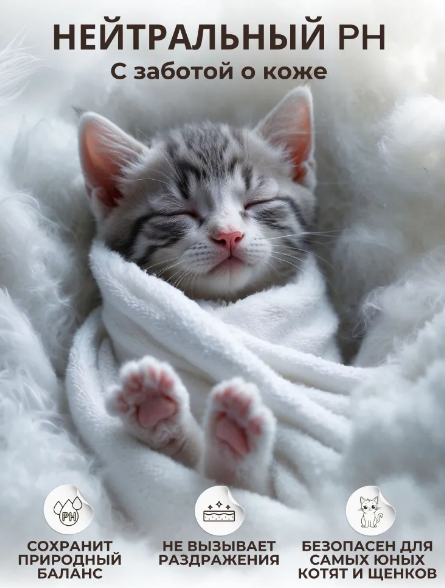 Косметический шампунь для ухода за чувствительной кожей собак и кошек, подверженных аллергическим реакциям.