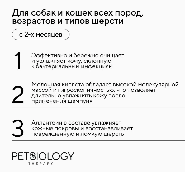 Шампунь PetBiology с молочной кислотой и аллантоином д/с и д/к
