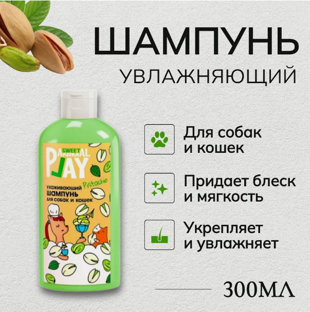 Шампунь для собак и кошек «ФИСТАШКОВОЕ МОРОЖЕНОЕ». Натуральная косметика с восхитительными ароматами изысканных десертов! Ключевые особенности: Ухаживающий шампунь с мягким ароматом фисташкового мороженого эффективно промывает шерсть и очищает кожу питомца. Органический экстракт фисташки питает и увлажняет шерсть, смягчает и тонизирует кожу, насыщает ценными витаминами и минералами. Идеально подходит для ежедневного применения. Animal Play – это широкая линия шампуней для регулярного ухода за кожей и шерстью собак и кошек всех пород.