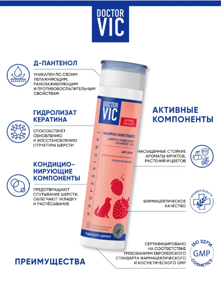 Шампунь-кондиционер Doctor VIC «STRAWBERRY TART» д/соб всех пород 250 мл