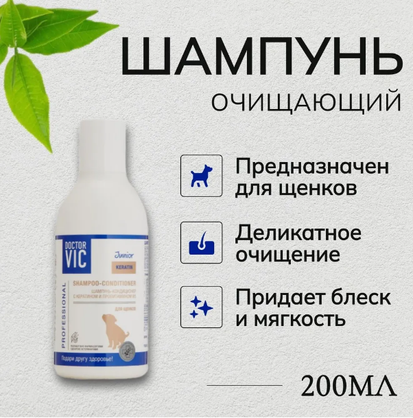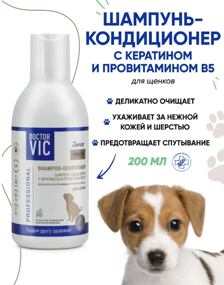 Шампунь-кондиционер для щенков Doctor VIC с кератином и провитамином B5, 200 мл