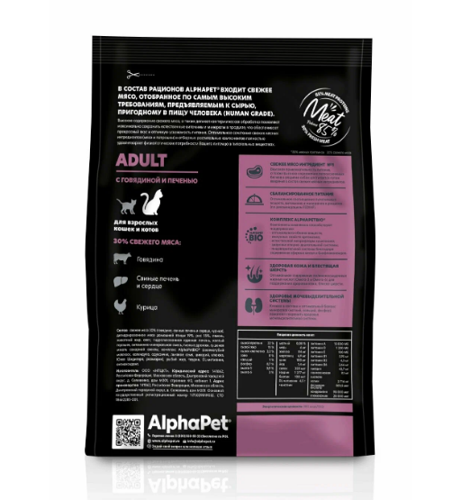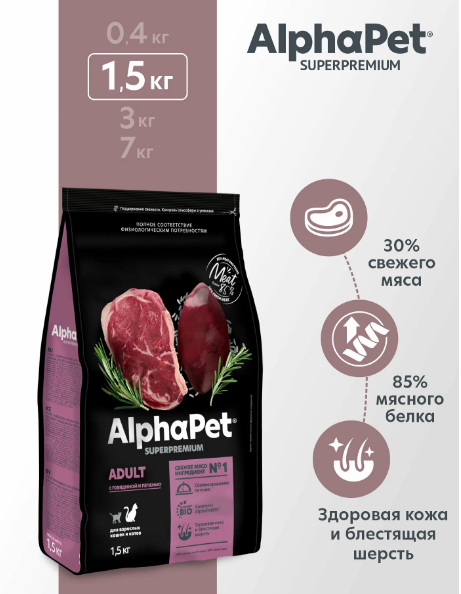 ALPHAPET SUPERPREMIUM 1,5кг для кошек с говядиной и печенью