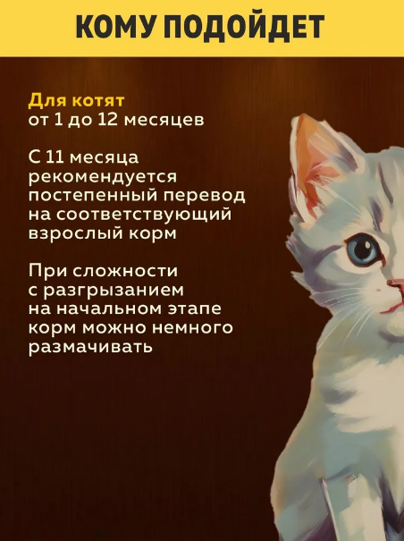 Не содержит пшеницу, кукурузу, сою, субпродукты, добавленные глютены, ГМО, искусственные красители, вредные химические добавки и консерванты. Натуральные ингредиенты и антиоксиданты. Оптимальный баланс жирных кислот Omega-6 и Omega-3.