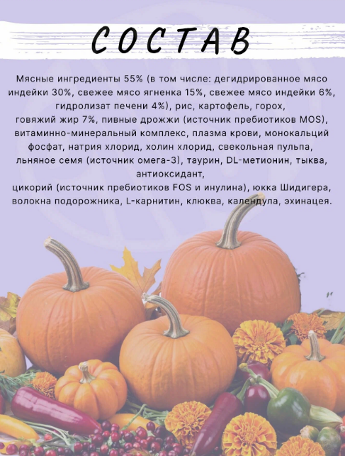 55% мясных ингредиентов служат источником энергии и поддерживают основные процессы жизнедеятельности и позволяют снизить нормы кормления.