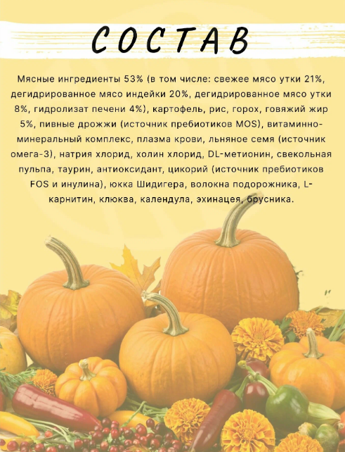 53% мясных ингредиентов служат источником энергии и поддерживают основные процессы жизнедеятельности и позволяют снизить нормы кормления.
