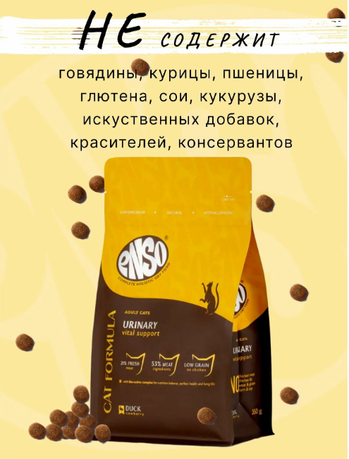 ENSO® Cat Formula Urinary – сухой полнорационный корм для взрослых кошек для профилактики мочекаменной болезни кошек со свежей уткой с добавлением брусники.