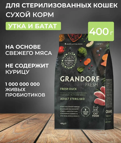 GRANDORF FRESH STERILISED Утка с бататом беззерновой 400гр
