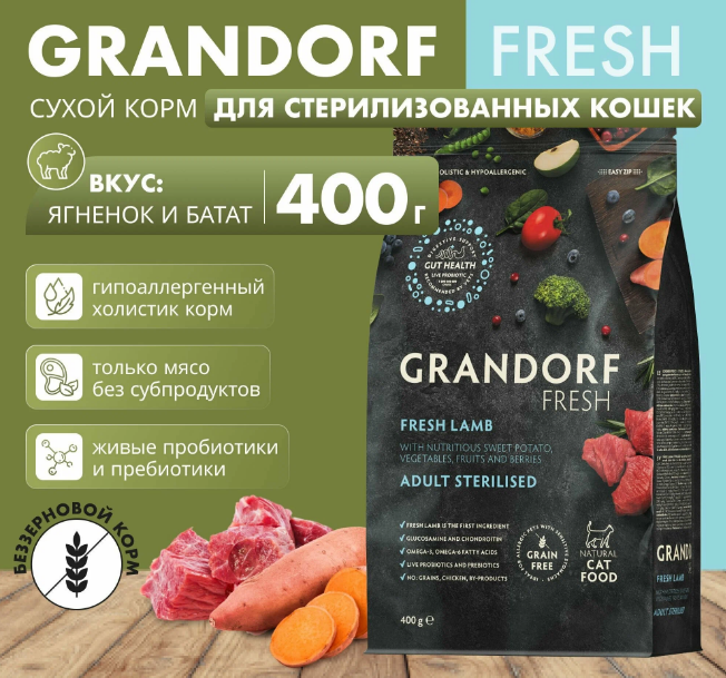 GRANDORF FRESH STERILISED Ягненок с бататом беззерновой 400гр