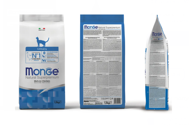 Корм сухой Monge "Urinary" - полноценный сбалансированный рацион для взрослых кошек для профилактики мочекаменной болезни, помогающий предотварить образование кристаллов и камней в мочевом пузыре.