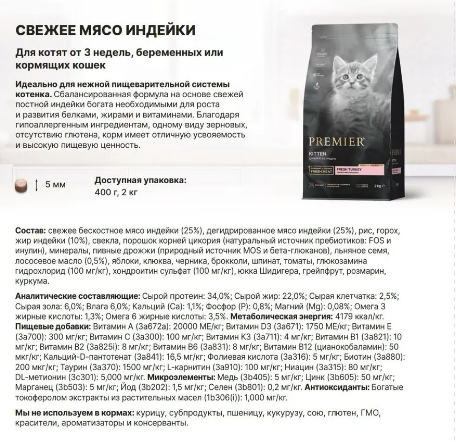 Premier Cat Turkey KITTEN (Свежая индейка для котят) 400 г
