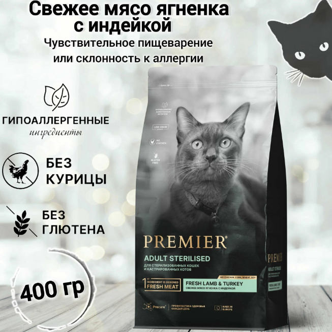 Premier Sterilised свежее мясо ягненка с индейкой 400гр