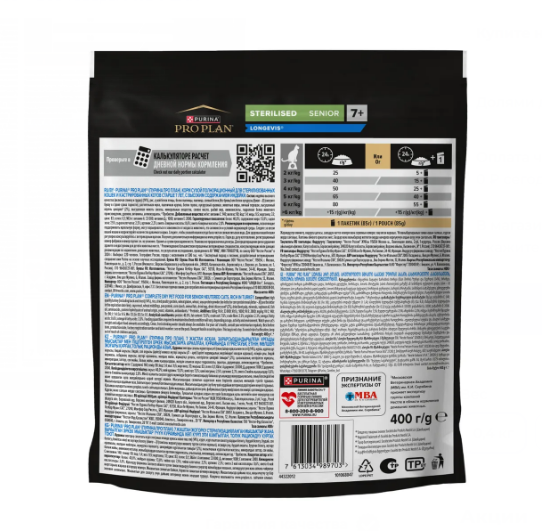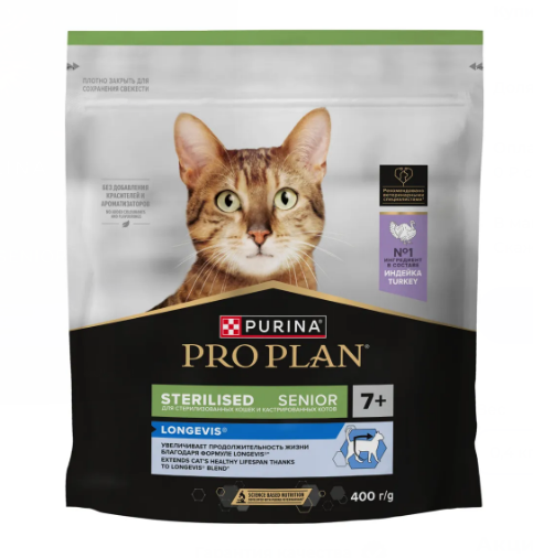 PRO PLAN "Sterilised" для стерилизованных кошек +7 Индейка 400гр