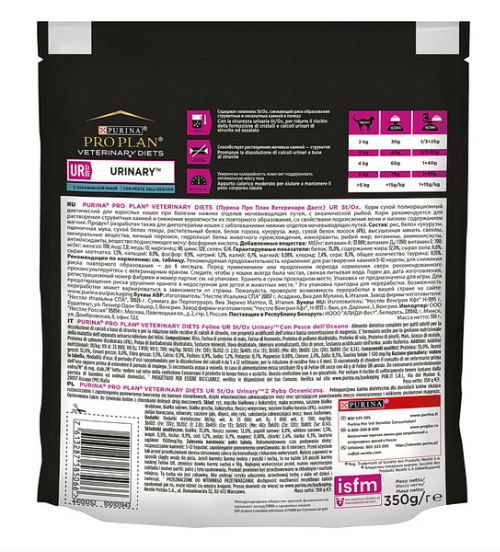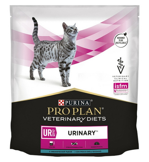 Корм сухой полнорационный диетический PRO PLAN® Veterinary Diets UR St/Ox Urinary (Уринари) для взрослых кошек при болезни нижних отделов мочевыводящих путей, с океанической рыбой.nbsp;Корм рекомендуется для растворения струвитных камней и снижения вероятности их повторного образования, со свойствами подкисления мочи и низким содержанием магния. Продукт разработан также для диетотерапии кошек с заболеваниями нижних отделов мочевыводящих путей. Использование данного корма рекомендовано под наблюдением ветеринарного врача. Преимущества: 1.Содержит комплекс St/Ox, снижающий риск образования струвитных и оксалатных камней в почках; 2.Способствует растворению мочевых камней — струвитов; 3.Умеренная калорийность помогает поддерживать оптимальную массу тела.