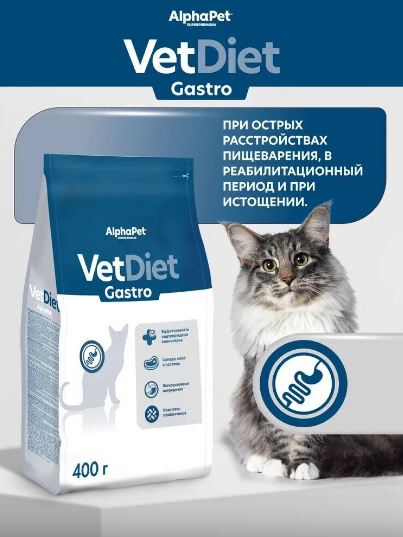 ALPHAPET VET DIET GASTRO 400гр – лечебный корм для кошек при расстройстве пищеварения и истощении