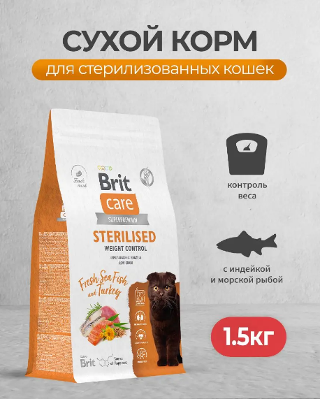 Brit Care Cat Sterilised Weight Control корм для стерилизованных кошек для контроля веса 1,5 кг