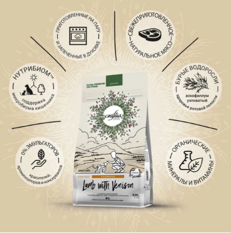 CRAFTIA HARMONA — корм для кошек ультрапремиум класса, созданный с любовью к природе. Состав кормов CRAFTIA прозрачен и понятен, отсутствуют скрытые добавки и сомнительные ингредиенты. Все, что заявлено в составе корма, гарантированно присутствует в каждой грануле.