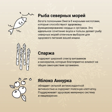 Состав кормов CRAFTIA прозрачен и понятен, отсутствуют скрытые добавки и сомнительные ингредиенты. Все, что заявлено в составе корма, гарантированно присутствует в каждой грануле. Собственный завод, сотни квадратных метров научно-исследовательских лабораторий, первоклассное сырье — все это позволяет создавать тщательно сбалансированный высокобелковый корм с холистическим подходом. Все компоненты корма подходят для употребления человеком и не содержат ГМО.