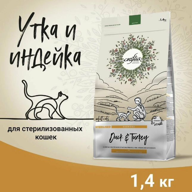 Craftia для взр.кошек с уткой и индейкой 1.4 кг