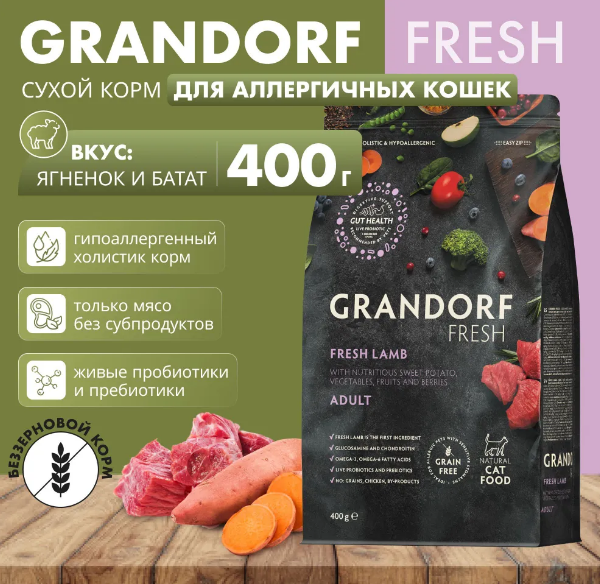 GRANDORF FRESH ADULT Ягненок с бататом беззерновой 400гр