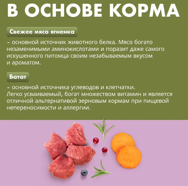 Свежее мясо ягненка– основной источник животного белка. Мясо богато незаменимыми аминокислотами и поразит даже самого искушенного питомца своим незабываемым вкусом и ароматом.