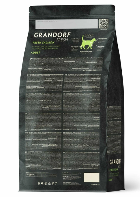 Беззерновой кошачий корм Грандорф Fresh Cat ADULT Salmon&Sweet Potato с живыми пробиотиками.