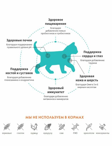 Беззерновой корм с живыми пробиотиками.