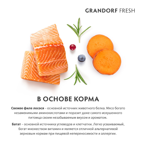 GRANDORF FRESH STERILISED Лосось с бататом беззерновой 400гр