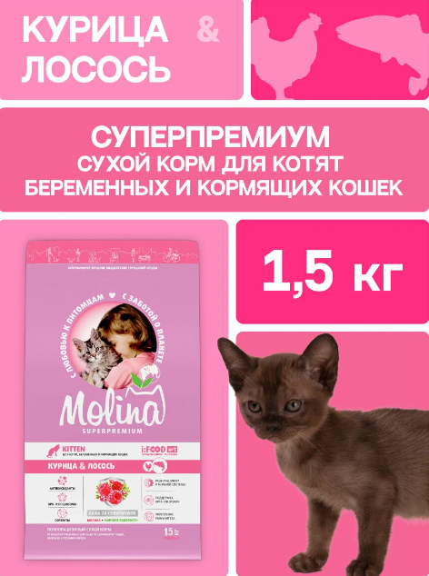MOLINA сух.корм курица и лосось для котят 1.5кг
