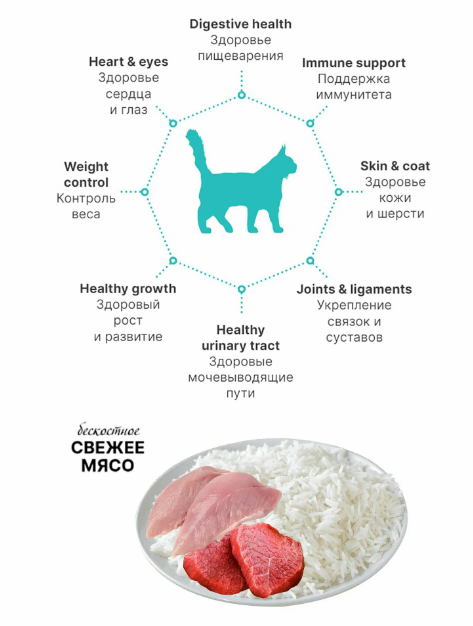 Свежее гипоаллергенное и питательное мясо ягненка и постной индейки благотворно влияют на пищеварительную систему кошки. Благодаря гипоаллергенным ингредиентам, одному виду зерновых, отсутствию глютена, корм имеет отличную усвояемость, высокую пищевую ценность и помогает оставаться вашему питомцу здоровым и жизнерадостным на протяжении долгих лет жизни.
