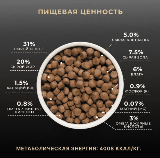 Благодаря низкозерновому и безглютеновому составу наши корма легко усваиваются и отлично подходят для животных с чувствительным пищеварением или пищевой аллергией.