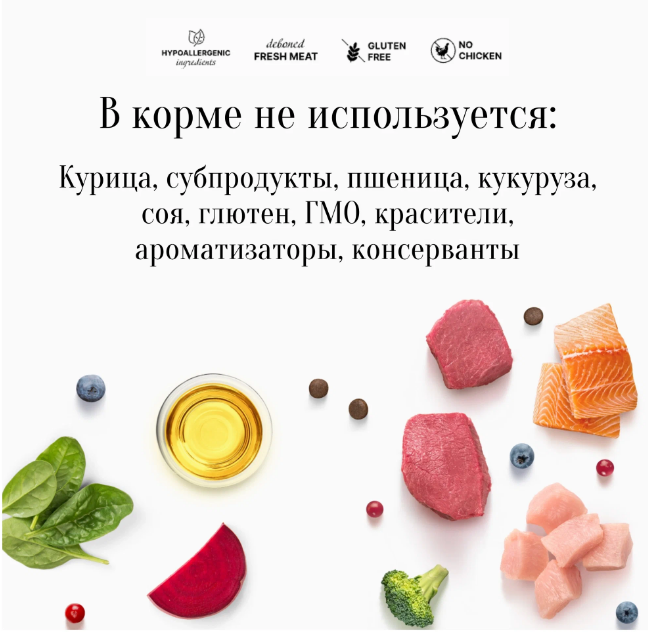 Для взрослых стерилизованных кошек и кастрированных котов от 1 года с чувствительной кожей и шерстью или склонных к аллергии или пожилых кошек. Свежее гипоаллергенное и питательное филе лосося и постной индейки благотворно влияют на пищеварительную систему кошки. Благодаря гипоаллергенным ингредиентам, одному виду зерновых, отсутствию глютена, корм имеет отличную усвояемость, высокую пищевую ценность и помогает оставаться вашему питомцу здоровым и жизнерадостным на протяжении долгих лет жизни. Поддерживает здоровье чувствительной кожи и шерсти кошки за счет счёт правильно подобранных ингредиентов, а также сбалансированному содержанию омега-3 и 6 жирных кислот. свежее мясо без костей Мы используем свежее мясо высшего сорта, изначально пригодное для употребления человеком. Это гарантирует, что ваш питомец получает высокопитательный, чрезвычайно вкусный, легко усвояемый высококачественный источник белка. низкозерновой состав Благодаря низкозерновому и безглютеновому составу наши корма легко усваиваются и отлично подходят для животных с чувствительным пищеварением или пищевой аллергией. фрукты, овощи И ягоды.