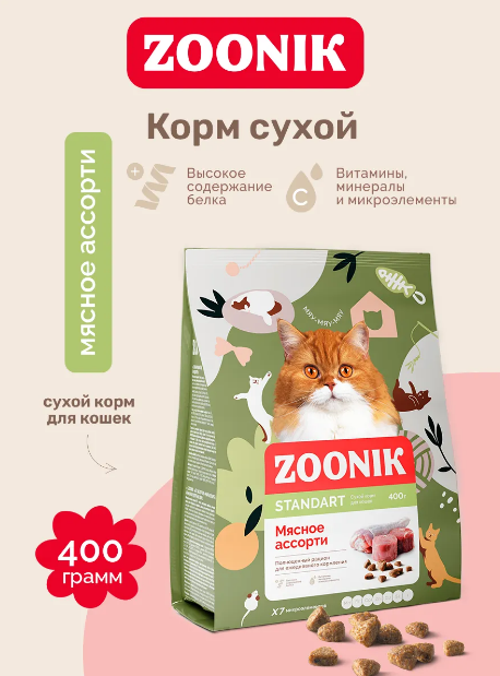 ZOONIK Сухой корм для Котят, Мясное ассорти, 0,4 кг