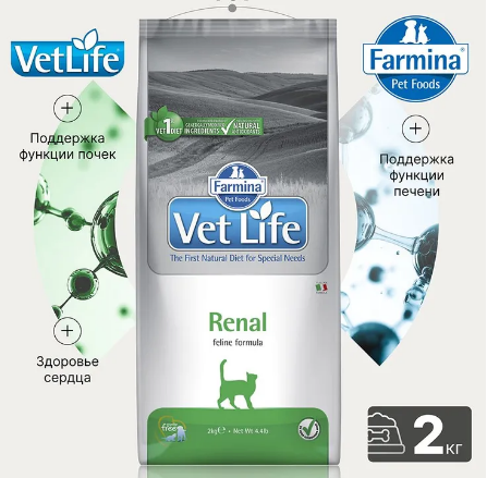 Farmina Vet Life Renal корм для кошек, для поддержания функции почек при почечной недостаточности, 2 кг