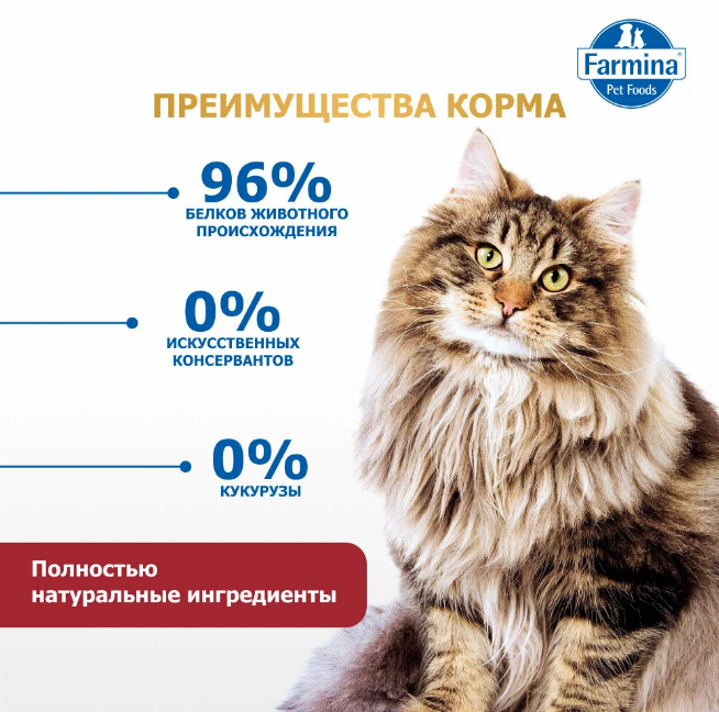 Размер гранул составляет 9-10,5 мм, что делает корм удобным для жевания и поедания кошками.