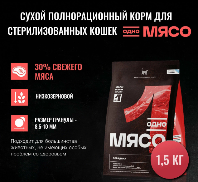 Одно мясо 1,5 г полнорационный корм для стерилизованых кошек с говядиной