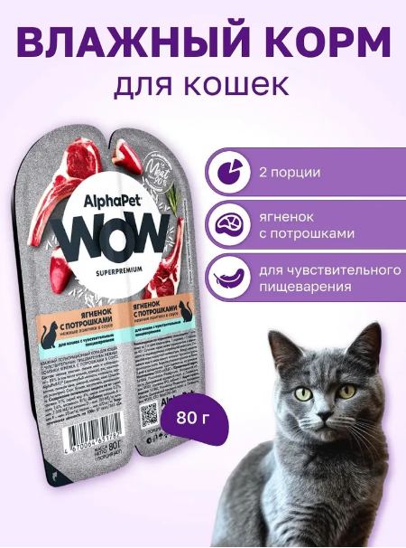 ALPHAPET для кошек с чувствительным пищеварением (ЯГНЕНОК И СЕРДЦЕ), 80 г