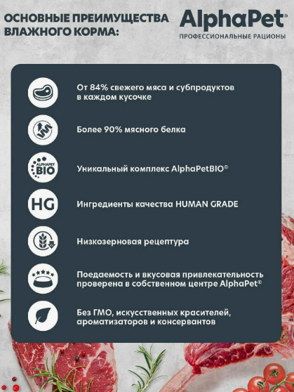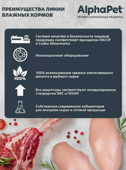 AlphaPet – это корм влажный для кошек, который обеспечивает сбалансированное питание и поддерживает здоровье пищеварительной системы.