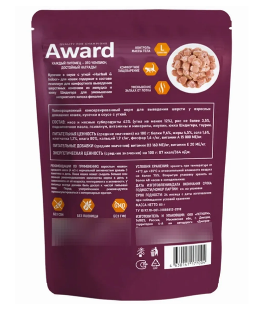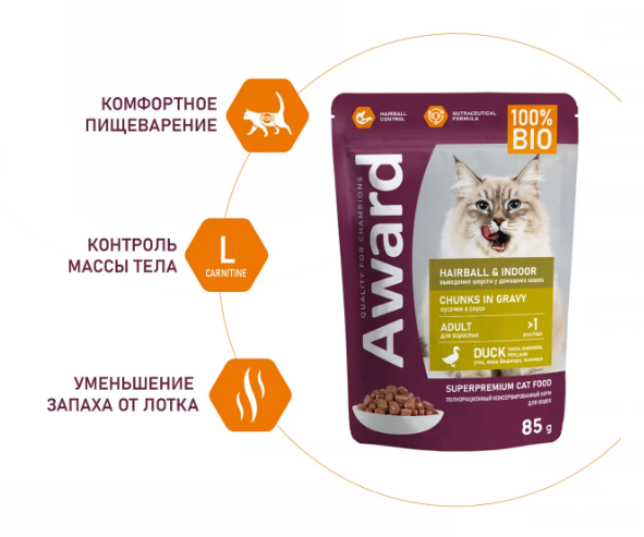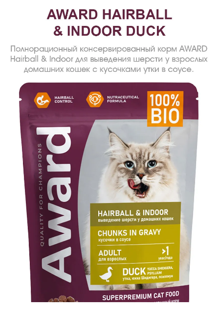 AWARD Hairball & Indoor в соусе с уткой 85г