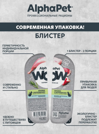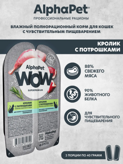 ALPHAPET WOW кролик с потрошками 80г для кошек с чувствительным пищеварением