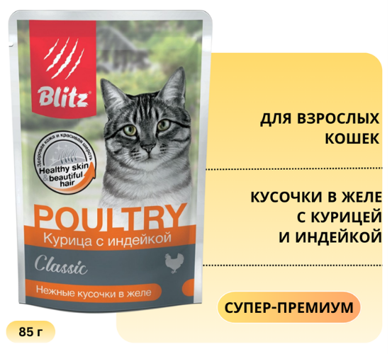 Blitz Classic Курица с индейкой кусочки в соусе 85гр