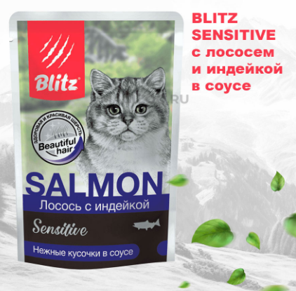 Blitz Sensitive Лосось с индейкой в соусе 85 г